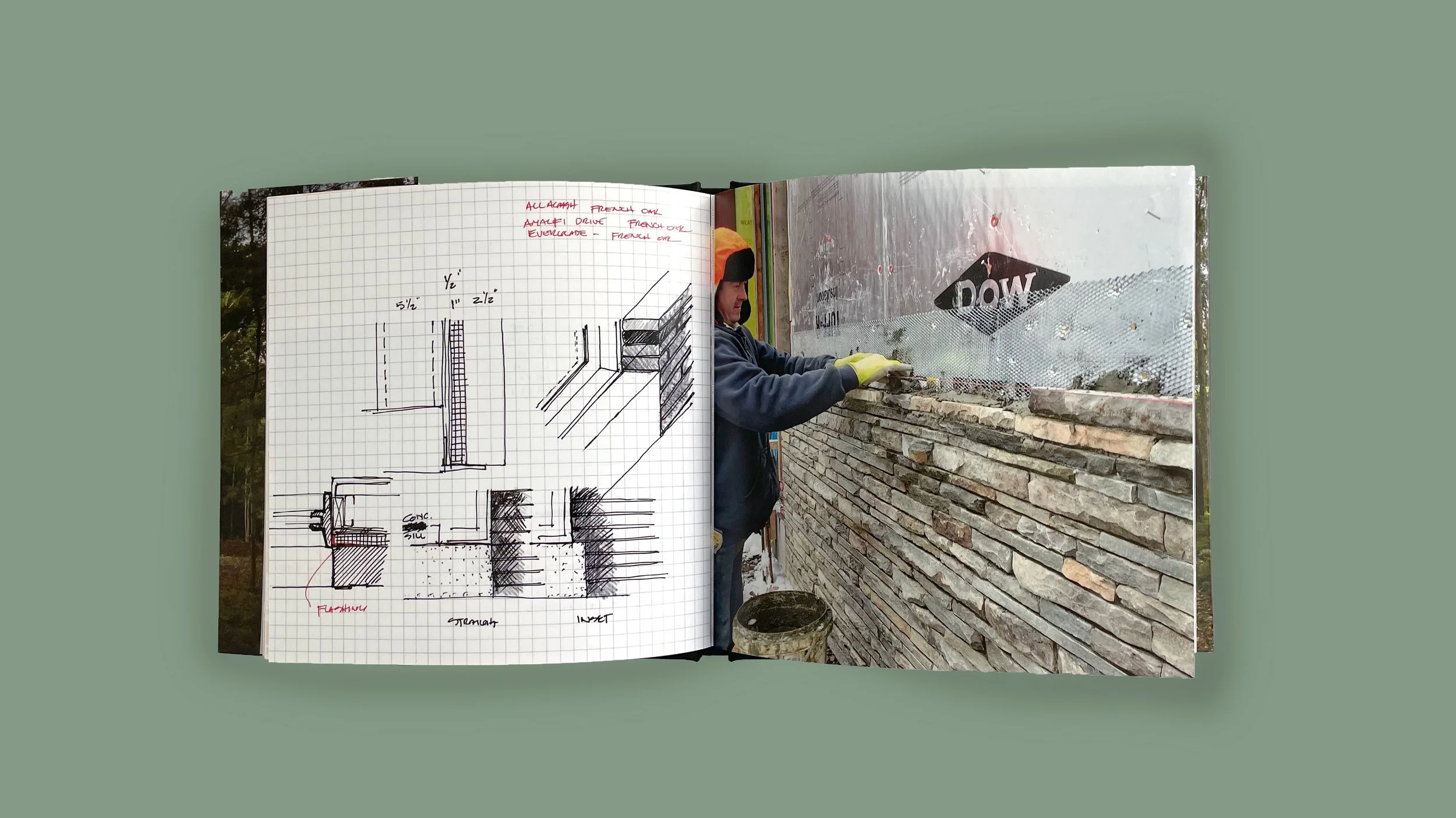 For each completed home, the Studio makes two books: one for the client and the other for the firm. These books are a trip down memory lane of the journey from start to finish between architect and client. From initial site visits and concrete pours to fixtures and furniture completing the home, each memory is captured. I was tasked with designing the books for three completed homes, Kaat Cliffs, Tranquil Abiding, and South Mountain House.